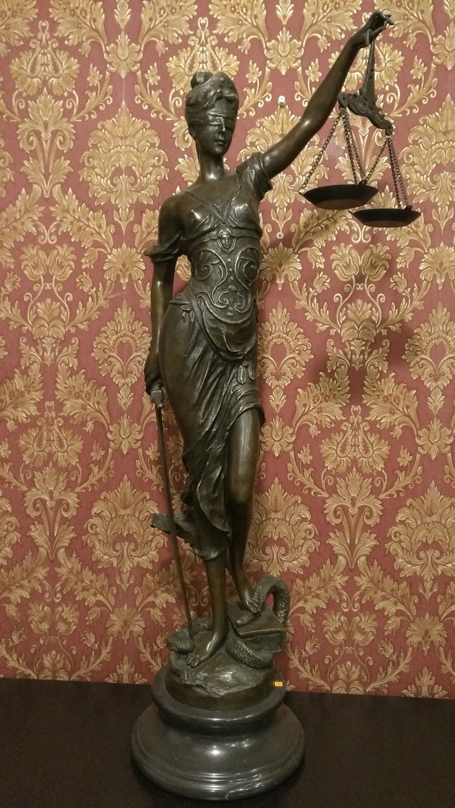 Антиквариат. Бронза, высококачественное литье, постамент- мрамор. Копия авторской работы скульптора MAYER. Статуя «Фемида» это отличный деловой подарок человеку, который связан с юриспруденцией.