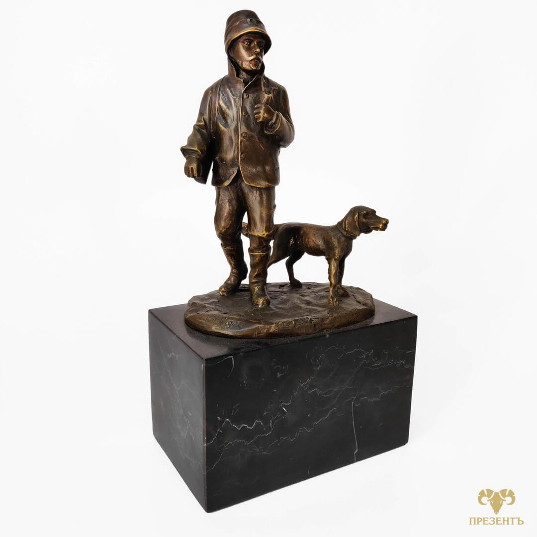 Бронзовая скульптура Охотник и собака