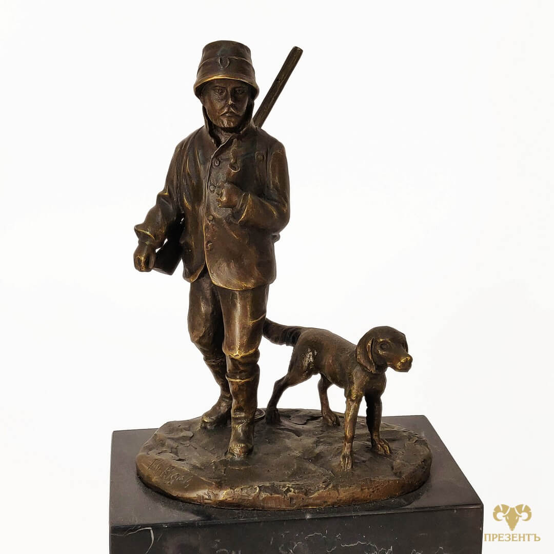 Бронзовая скульптура Охотник и собака - Антикварно-ювелирный салон Презентъ