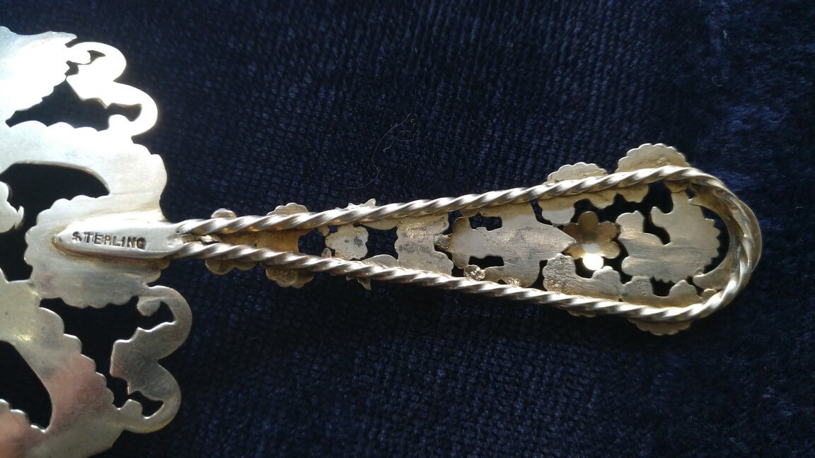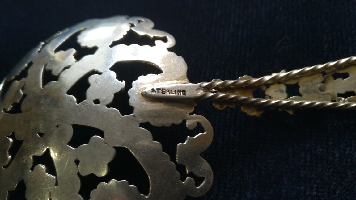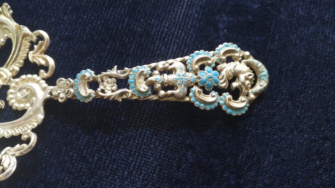 Серебряная лопатка для пирожных с эмалью, в идеальном состоянии, присутствует надпись «STERLING», подтверждающая 925 пробу серебра.