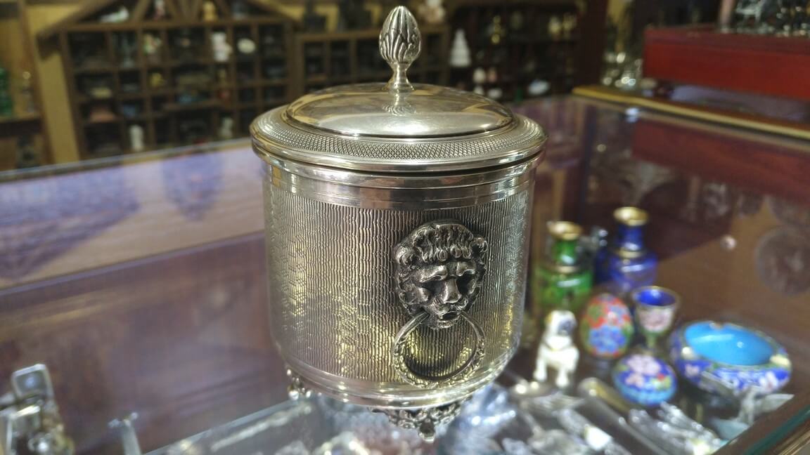 Серебряная сахарница с крышкой из Европы, вещь в отличном состоянии. Это элитный, дорогой подарок к любому событию. Обратите внимание, как красиво декорирована эта сахарница головами львов по бокам.