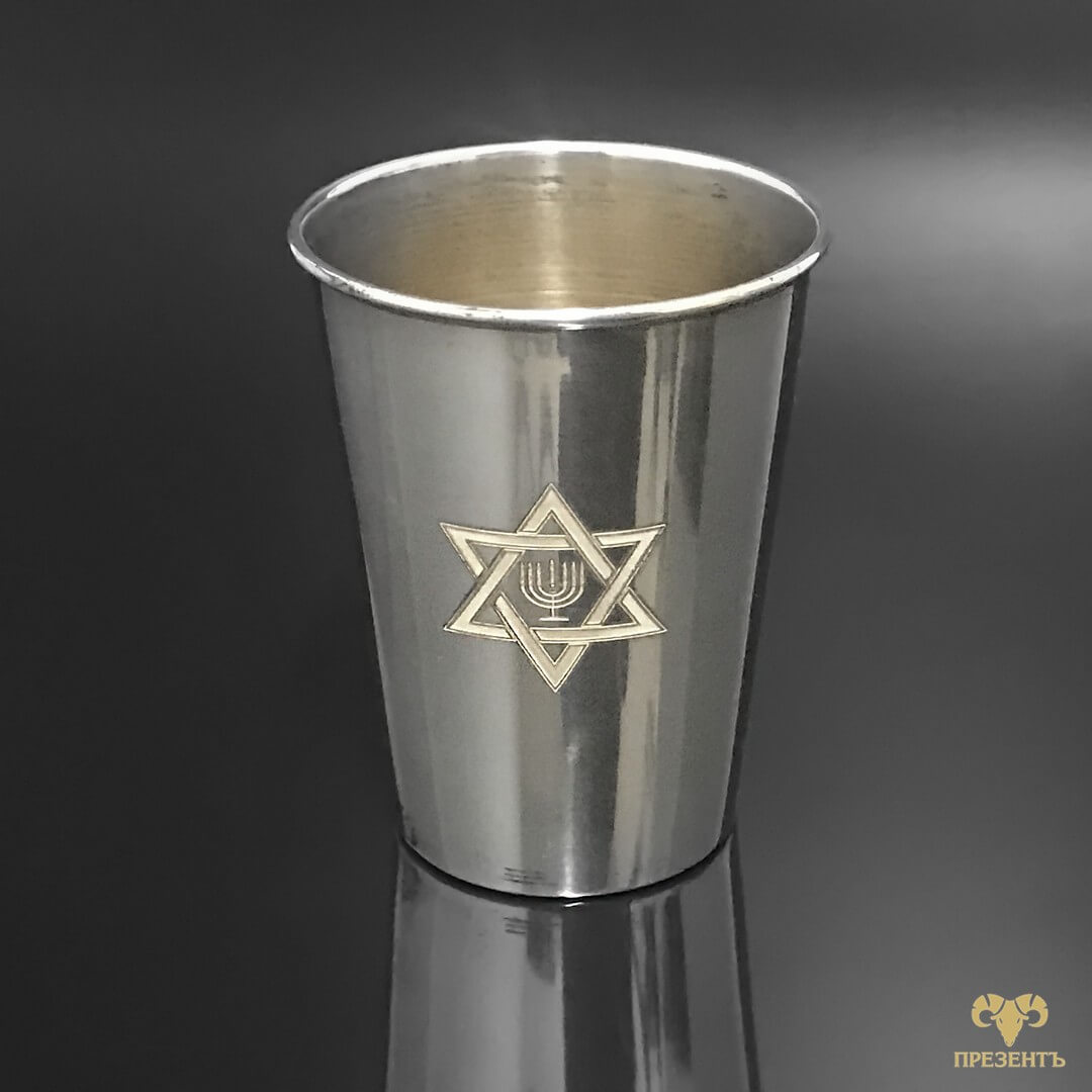 Серебряная стопка Звезда Давида. Отличный подарок с иудейской символикой. Для каждого религиозного иудея такой подарок будет лучшим.